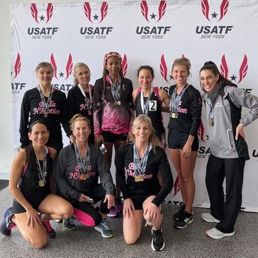 I'm grateful to still be able to compete as a masters athlete and have done everything from the 100 meters to the marathon! I hold national titles in the 800, 1500, and mile. I anchored the 4 x 400 women's 50-54 team that broke the World Record at the 2022 USATF Masters Indoor National Championships and led the 4 x 400 relay that broke the American Record at the 2021 USATF Masters Outdoor National Championships.